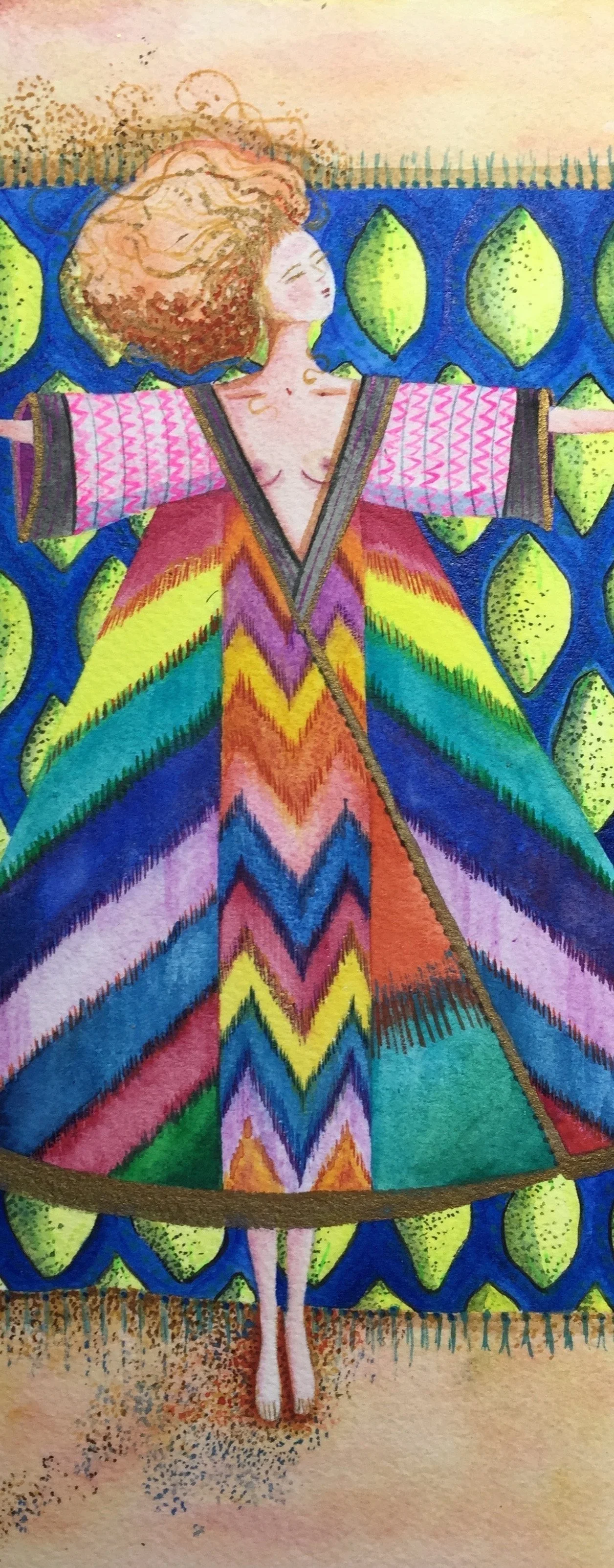 Artiste pratiquant aquarelle, peinture à huile si possible à base de pigments naturels, et selon les procédés des techniques anciennes, tempera à l’oeuf, encres et gouaches, ou crayons et pastels secs. D’autres matériaux naturels et précieux sont parfois récupérés, et intégrés au gré du travail.